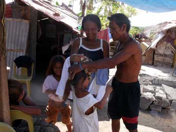 ・外国人が肉体労働を手伝うのは、場合にもよるが、フィリピンではあまりお勧めできない場合が多い。一日 一生懸命手伝ったが、慣れないので現地の人の100ペソ分くらいの仕事にしかなっていないのでは笑い話であろう。それよりは、日本で例えば3日アルバイトして、そのお金で、大工を雇い、建材を買って、家の修理に回れば、かなりの数の家の修理に貢献できるはずだ。その場合には、人をあごで使うような態度でなくて、監督しながら、大工が嫌がるような仕事を手伝えば、大工は熱心に働いてくれる可能性が高くなる。しかし、これは、ちょっとだけ支援の範疇からは逸脱していそうだ。