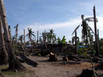 かなりの椰子の木が倒れてしまった。現地の人の話では、台風の目の通過で、途中15分ほどは天気が回復したそうだ。まさに直撃と言えよう。バンタヤン島のサンタフェ、アリスビーチの