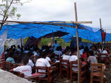 私の寝た場所はなんとか屋根があったが、この子供たちはまだまたブルーシート暮らしが続いていた。