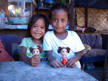 @バンタヤン島サンタフェ、アリスビーチハノイで買ってきた人形を持ってもらって撮ったやらせっぽい写真。それでもうれしいのが伝わってくるはず。