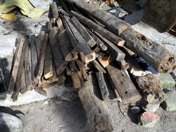 がれきからできた薪 建材に再利用を目指した古木 この作業をやっていて一番楽しいのは、周囲の子供たちを巻き込むことだ。自分も一緒にやりたがるのと、抜いた釘を売って、おやつを買うのとで、子供たちには二つの興味がある。一緒にやる方は、てこの原理を理解してもらうのに絶好の教材だと思う。ただし、5歳くらいの子供が多いので、どこまで理解したかはなんとも言えないが、何か体では覚えたはずだ。入れ替わり立ち代わり子供がやってくるが、どうも根気が無くて長続きしないというフィリピン的な面も出てくる。しかし、そうではない場合もあり、まだ5歳くらいの一人の鼻垂れ小僧が、とても熱心に釘抜きを続けていて、その勤勉さに惹かれた。
