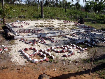 一方、今回は大災害なので、外国からも含めいろいろな支援があり、その一つがドイツの政府系のOXFAMによる道路の清掃である。一家族から一人、二週間で10日雇い、日当300ペソで、合計3000ペソの賃金を支払う。その後 家の修理を始めている人が多いので、かなり役に立っていると言える。各自 自宅からナタを持ってきて、大勢で道端の草をむしり、シキホールよりも道は綺麗になっている。いい感じではあるが、一方、壊れた家から出たガレキの方は、放置されたままのところがほとんどだ。道は、公共のものなので仕事の対象としても良いが、ガレキはそれぞれの家から出ているので個人で処理するべきということなのだろう。ガレキは釘が沢山出ていて危険なので、怪我でもされたら大変だという観点もあるのかもしれない。