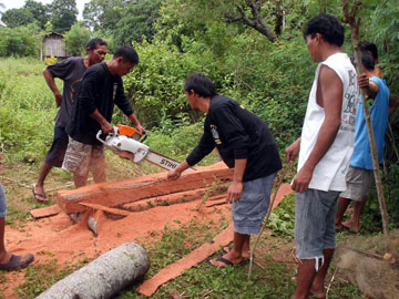 台風による被害の復旧にチェーンソーが役に立つ。道に倒れた木を切って 通行を確保したり、壊れた家の修理に使う材木を揃えるのにも チェンソーが使える。フィリピンでは、木をチェーンソーで長手方向に切ることで(ripping)、材木を そのまま切り出すことが多い。以前にも紹介したが、シキホール島で、台風で壊れた知り合いの家の修理に、チェーンソーを貸し出したところ、非常に安い予算で修理が出来たことがある。こちらはチェーンソーを貸し出し、ガソリン代として500ペソ支援しただけである。壊れた家の息子が大工で彼がすべて働き、田舎なので木は沢山あって、それらをチェーンソーで切り出せば材木として使える。500ペソの予算で、家の修理が済むとは非常に安いものである。