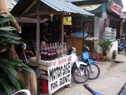 MOTER CYCLE FOR RENTシキホール港のすぐ近くにあり、今も看板は出ているが、貸し出しをしているのを、もう長く見かけない。