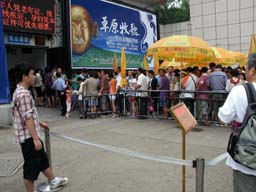湖南省博物館には、ミイラなど馬王堆古墳関連の展示があるので、折角だから見て行こうと思ったが、失敗に終わった。到着した次の日の午後2時頃に行ってみると、今日のチケットは売り切れで、明日また来るようにと案内が出ていた。そこで、さらに次の日の午前9時頃に行ってみると、今度は長蛇の列ができていた。待ち行列の様子をしばらく眺めていたが、ほとんど進まないので、私は さっさと諦めて帰った。ミイラの周りに客が殺到すると危険なので、入場制限しているのかもしれないが、中国では、共産主義から金儲け主義へと移行したにもかかわらずこのサービスの悪さは、いただけない。