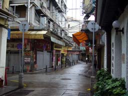 マカオのメイン通りである新馬路の 横にある裏通り |