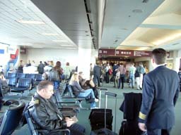 NWの搭乗ゲートに近く便利な場所にDLラウンジがある。アジア地区のプラチナ、ゴールドなら国内線利用のみの場合でも入れるようになったはずだが、残念ながら入室を拒否され、ここで朝食をとろうという作戦は失敗に終った。