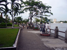 個人的な好みで水辺に行きたくなりサイゴン川を目指した。しかしながら、サイゴンの交通量は大変なもので、ここに至るために、道を渡るのが大変だった。信号、歩道橋、地下道のようなものが見当たらず、とにかく、普通に飛ばしているバイクや自動車の間をぬって、何とか横断しないといけなかった。